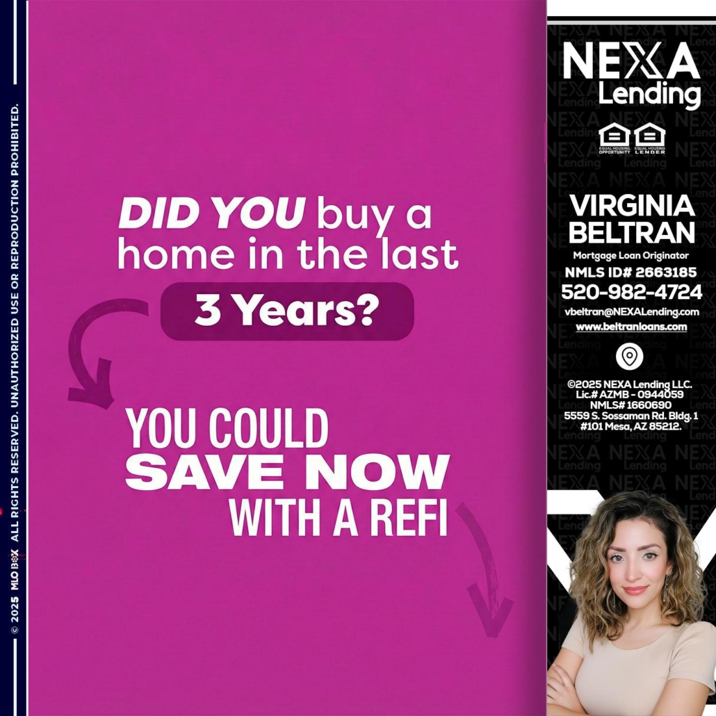 Hi, my name is Virginia Beltran. I’m a Loan Officer with NEXA Lending LLC., offering personalized mortgage solutions, fast customized quotes, great rates and service with integrity.