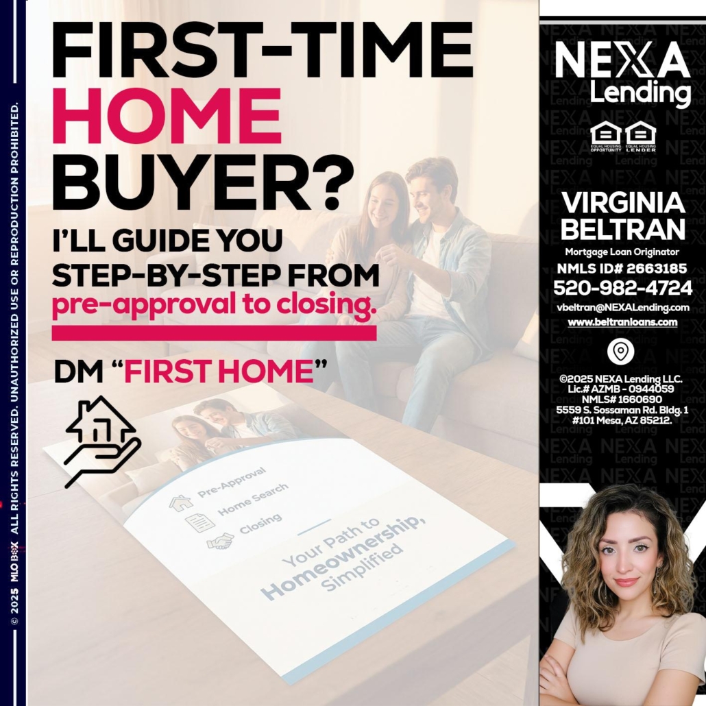 Hi, my name is Virginia Beltran. I’m a Loan Officer with NEXA Lending LLC., offering personalized mortgage solutions, fast customized quotes, great rates and service with integrity.