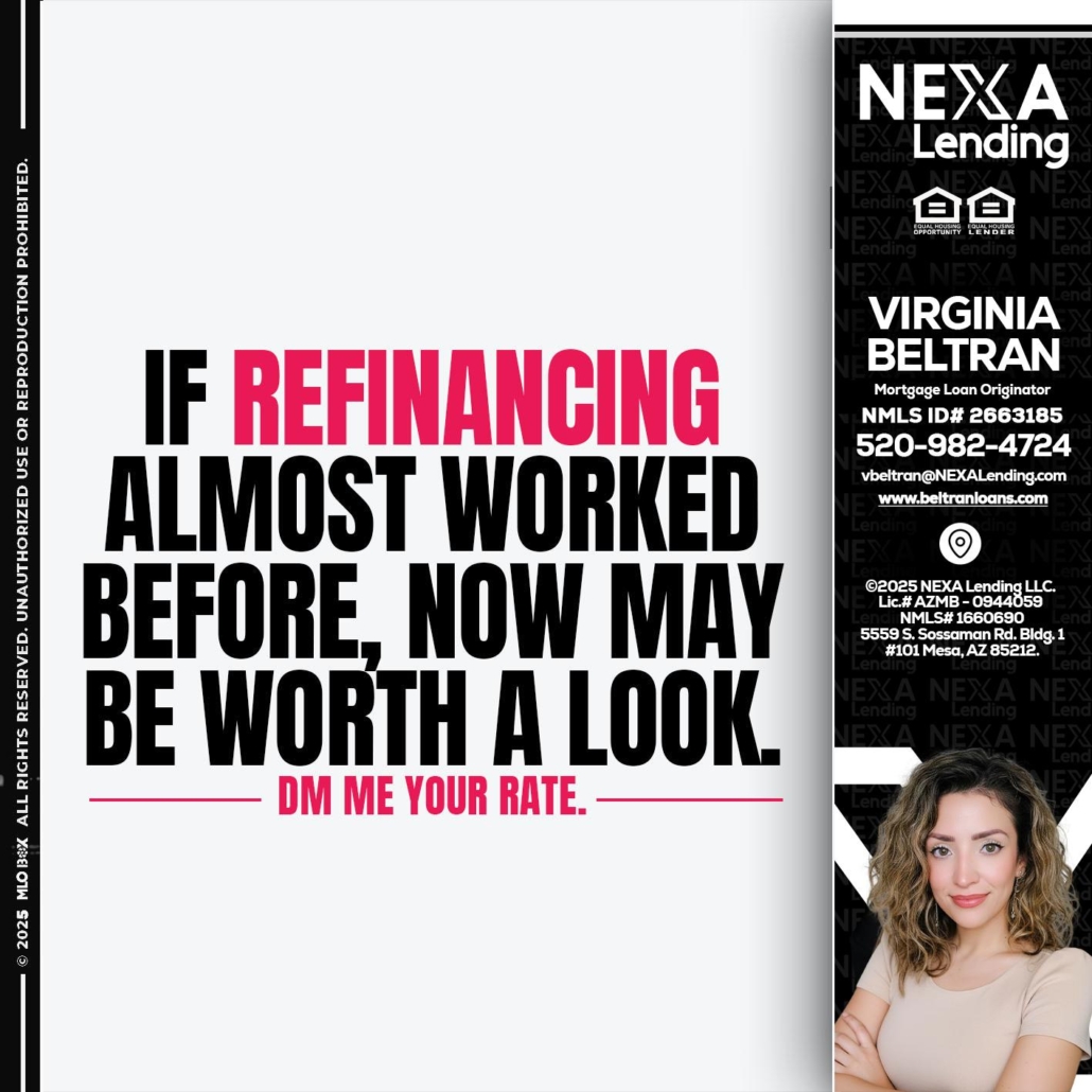 Hi, my name is Virginia Beltran. I’m a Loan Officer with NEXA Lending LLC., offering personalized mortgage solutions, fast customized quotes, great rates and service with integrity.