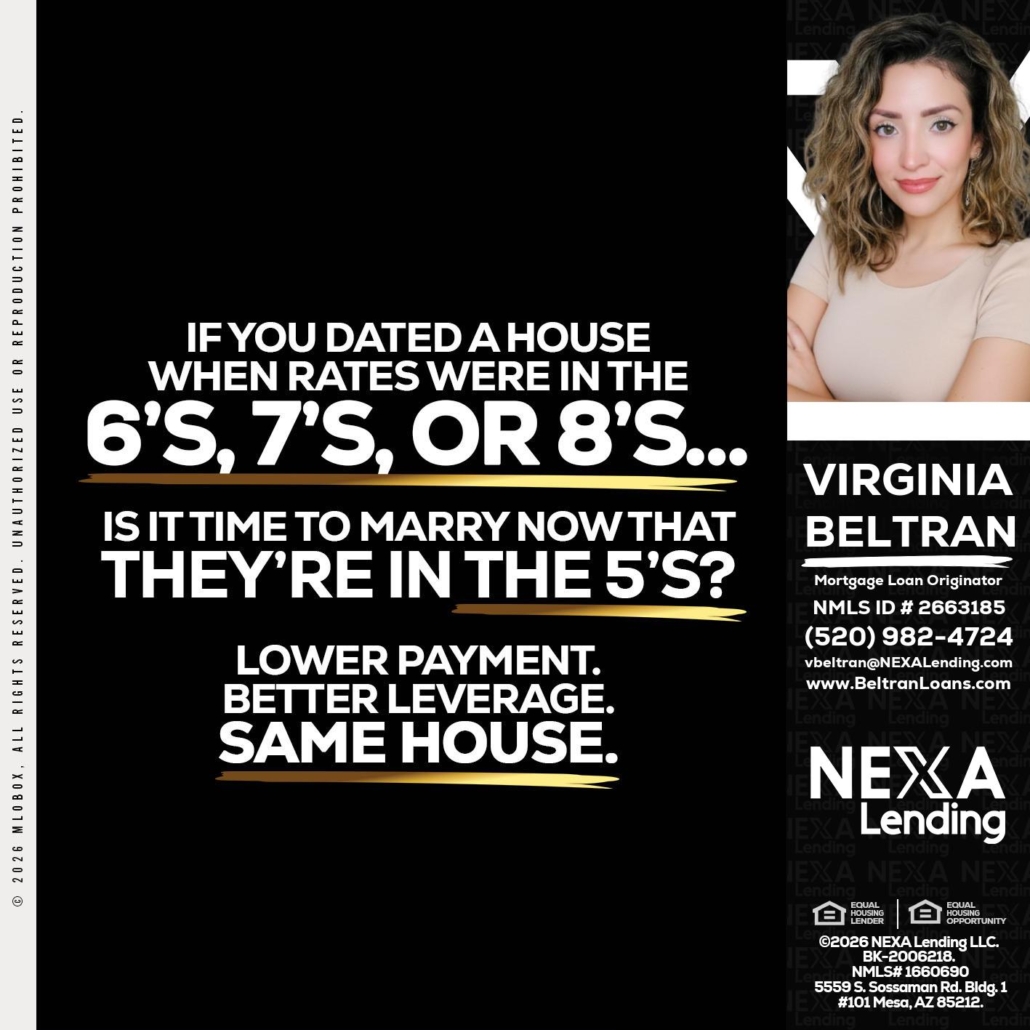 Hi, my name is Virginia Beltran. I’m a Loan Officer with NEXA Lending LLC., offering personalized mortgage solutions, fast customized quotes, great rates and service with integrity.